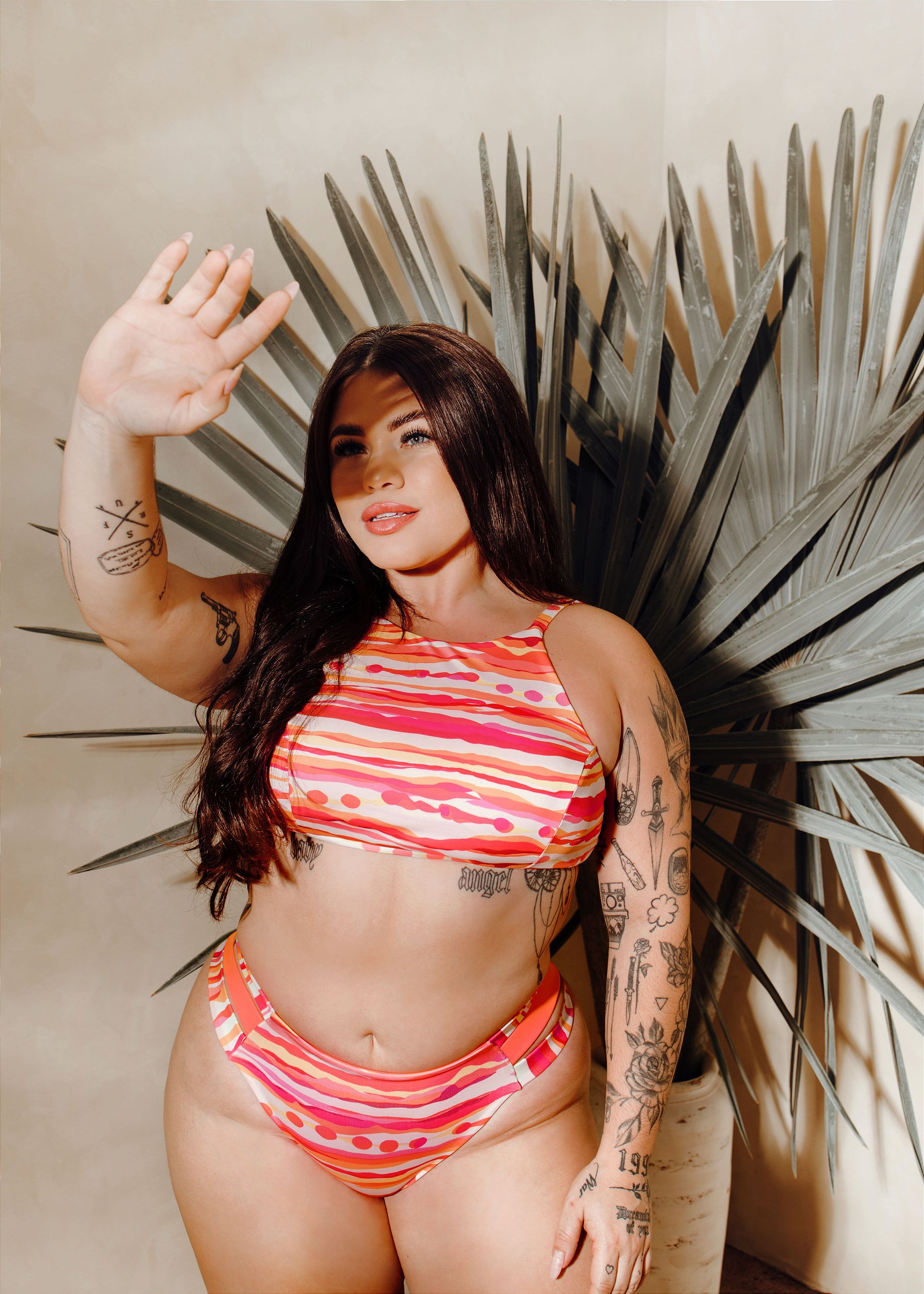 O biquíni cropped path é uma modelagem que possui bojo maleável, que modela sutilmente os seios e ajuda a não marcar.